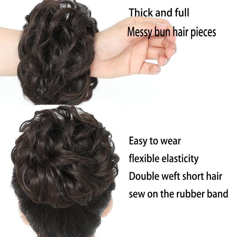 - Elastic hair bun: messy hair bun is elastic hair tie around durable double weft hair pieces, invisible and natural. messy hair bun for thick or thin ponytail hair. If you feel that the hair bun is too big, you can secure with hair pins, which will make the hair bun tight on your hair.