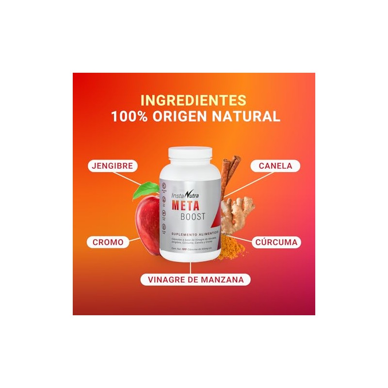 - MEZCLA PERFECTA!! Por qué usar MetaBoost? Nuestra fórmula adicionada con vinagre de manzana organico capsulas, Curcuma capsulas, Jengibre, Canela y Cromo para obtener todos los beneficios juntos en una sola cápsula!