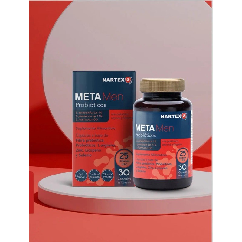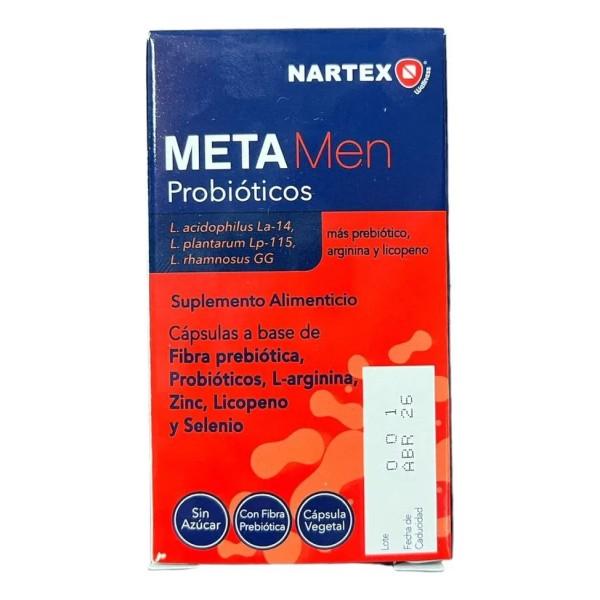 Meta Men Probióticos, Fibra Prebiótica, L-arginina 30caps Sabor Sin Sabor