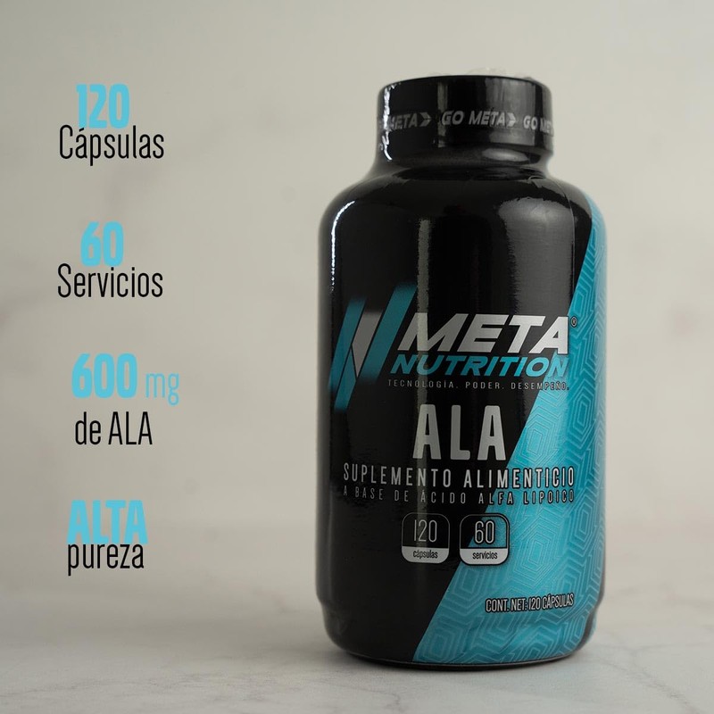 Meta Nutrition, ALA, Ácido Alfa Lipoico 120 cápsulas. 600 mg de ALA de Alta Pureza.