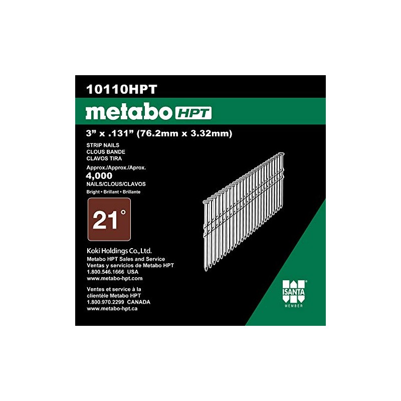 Metabo HPT Framing Nails | 3 in. x .131 | 21 Degree | Full Round Head | Smooth Shank | Bright Basic | Plastic Strip | 4,000 Count | 10110HPT