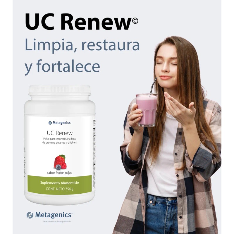 UC Renew está diseñado para apoyar la detoxificación metabólica, combinando proteína de arroz, fibra de bambú y nutrientes esenciales como vitamina C, magnesio, y sulfato de magnesio.