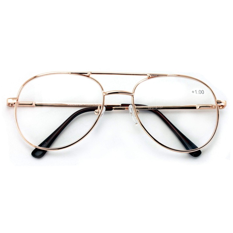 V.W.E. Classic Metal Reading Glasses - Spring Hinge Tear Drop Reader (Gold, 1.50, multiplier_x)