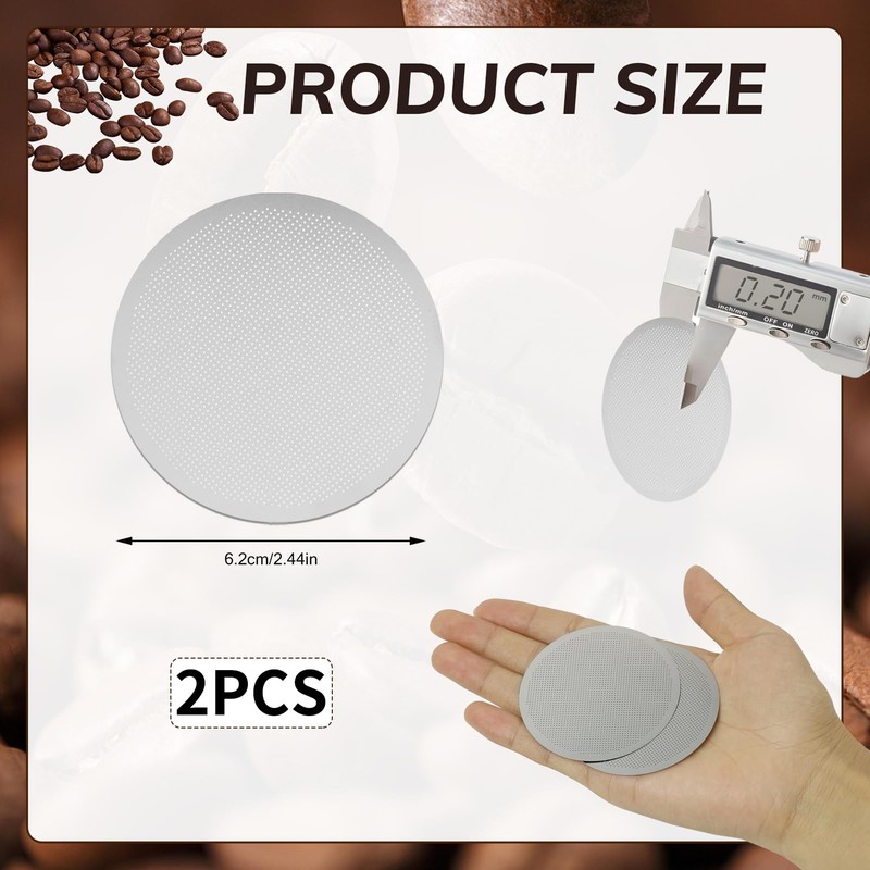- PREMIUM QUALITY MATERIAL: This coffee filter discs are made of durable stainless steel material, you can easily wash off the residue after use, the holes of the discs are 0.2mm, and they can filter oil, milk at the same time.