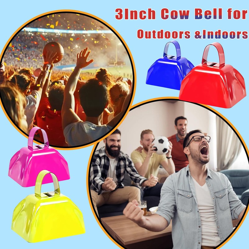 - Metal Cow Bell Noise Maker - 3 Inch Pack of 4 - Small Loud Metal Cowbell Noisemaker with Handle - Noisemakers Great for Football Games, Sporting Events
