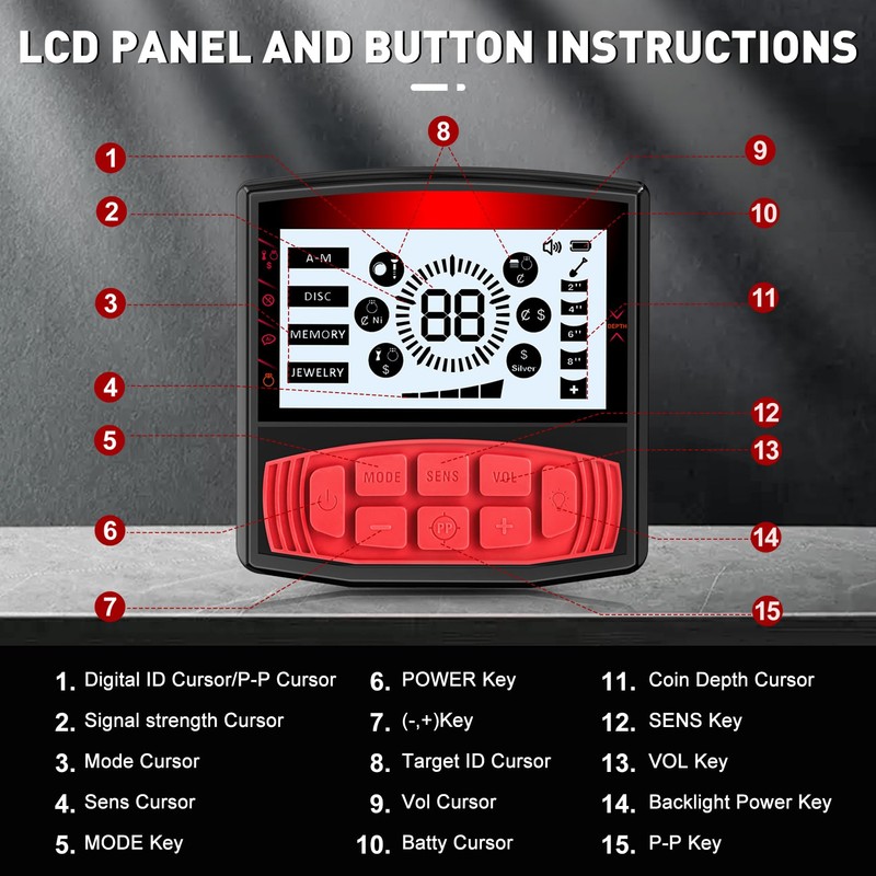 - 5 Professional Operating Modes:This gold detector has 5 modes, All metal mode, Discrimination mode, Memory mode, Pinpoint mode, Notch mode. In addition, the sensitivity can be adjusted, you can adjust the sensitivity to counteract some distractions to find your target faster, professional grade performance can satisfy your desire to explore and help you find the real 'gold'