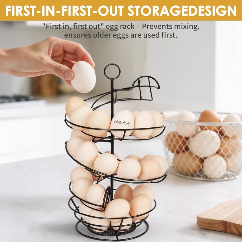 Large Capacity Egg Storage: Upgrade your egg storage with our innovative spiral egg holder, carefully designed to hold an impressive 3 dozen eggs