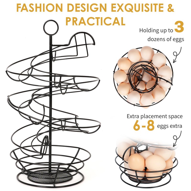 • Multi Usage: Beyond eggs, our spiral egg dispenser proves to be a multi-use gem, serving as a stylish accessory for holding various kitchen essentials.A metal egg holder fit nicely in a limited kitchen counter space. Keep counter top well organized.