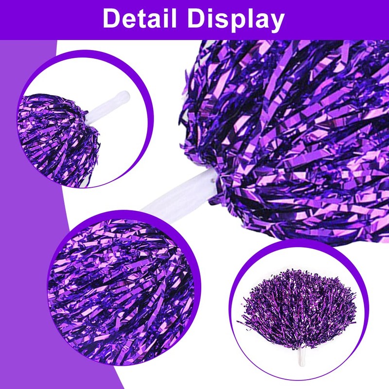 - ✨More dynamics: straight handle style pom poms made of metal foil have a metal foil on the surface that makes them look shiny, which makes your cheerleader more dynamic and attractive when you cheer. Cheer on your favourite teams and players.