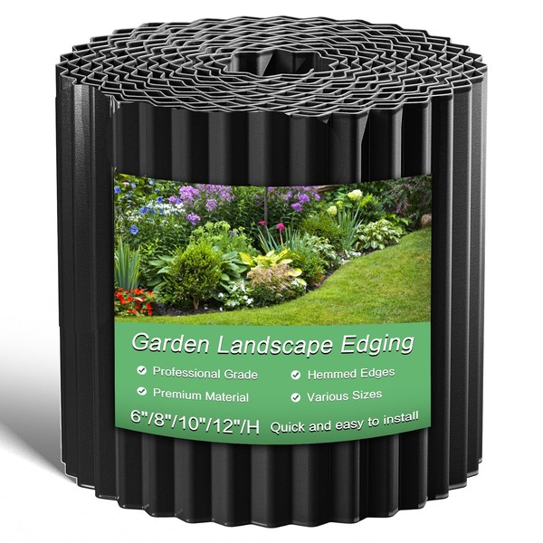 Metal Garden Edging for Landscaping, 6 Inch X 40 Ft Corrugated Shed Skirting Sturdy Landscape Edging Border for Flower Bed, Lawn, Garden Fence, Black