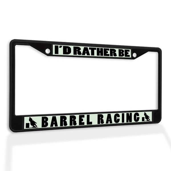 Metal Insert License Plate Frame I'd Rather Be Barrel Racing Weatherproof Car Accessories Black 2 Holes Solid Insert