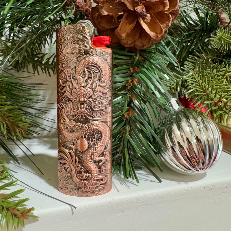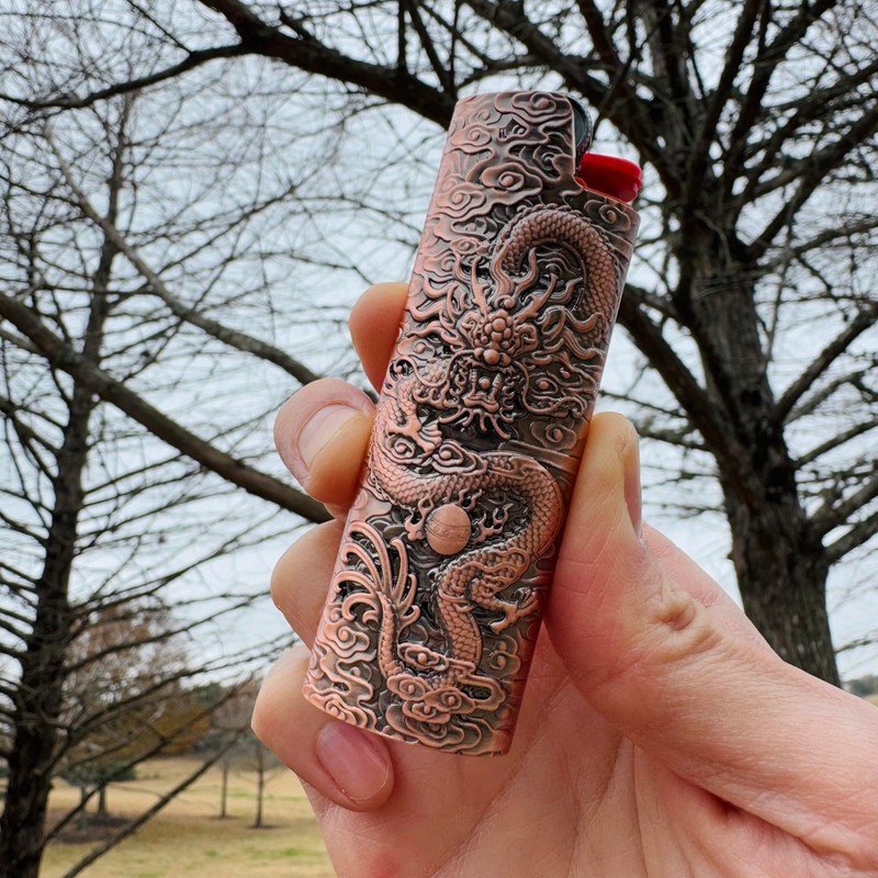 • [UNIQUE DESIGN ] Nice shape and handle smoothly. This lighter case design with an engraved dragon motif. One side of this lighter cover features a dragon design, while the other side is a smooth metallic surface.