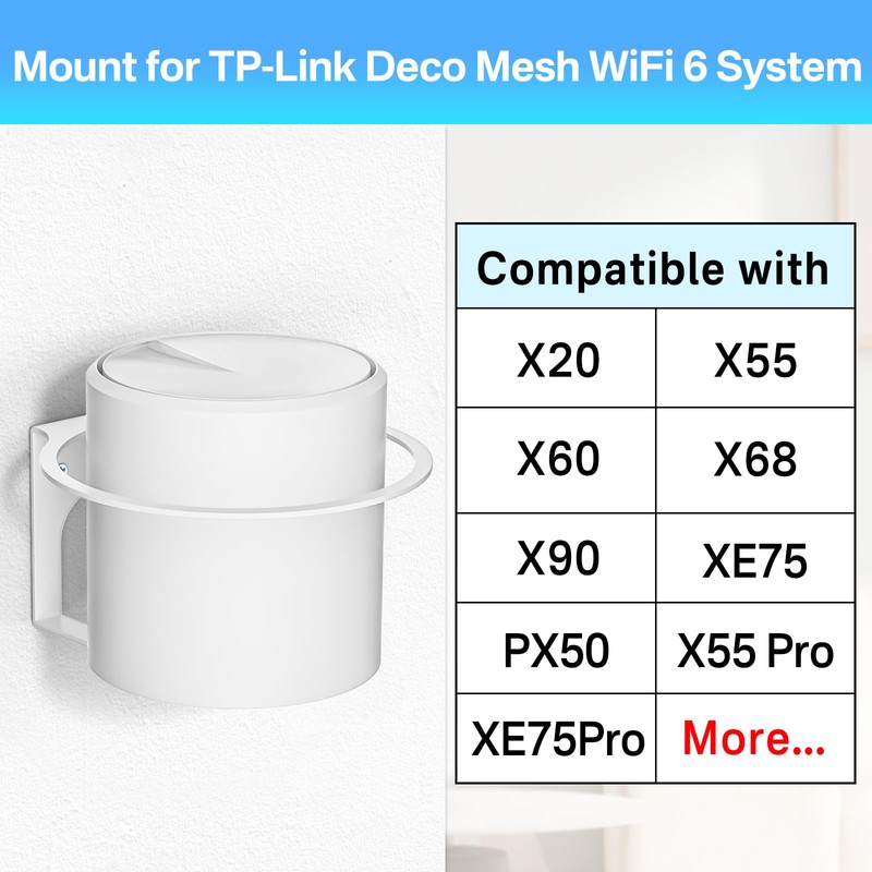 - Compatibility: The router wall mount for TP-Link specifically designed for TP-Link Deco X20, X55, X55 Pro, X60, X68, XE75, XE75Pro, X90, PX50 Mesh WiFi 6 System (AXE5400, AX1800, AX3000, AX3600, AX6600); Notice: Please check the model compatibility before purchase.
