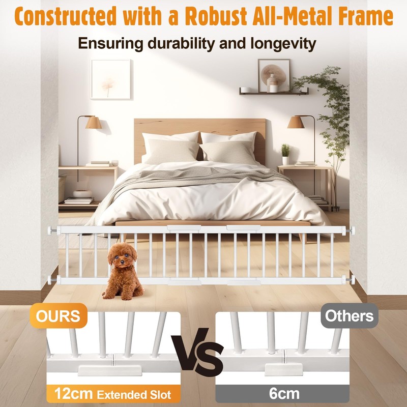 • 【Save Space】 Our small dog gate can be compress into less than half their size, and disassembled with ease, making it easy for users to quickly set up or put away. This makes it save space and hassle-free to store the expandable dog gate. Say goodbye to the tedious task of taking it down!