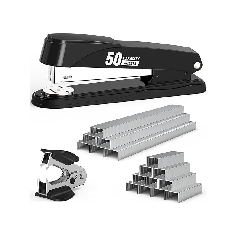 Metal Stapler Heavy Duty 50 Sheet Capacity with 1750 Staples and Staple Remover, Full Strip Staplers for Desk, No Jam, Non-Slip for Office & Classroom, Black