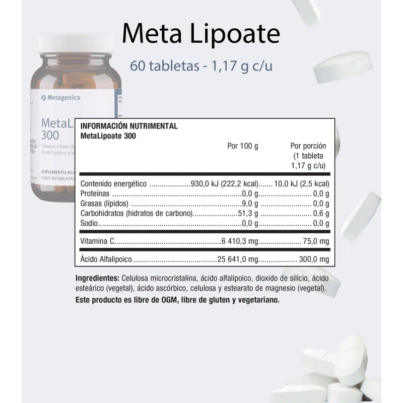 Metalipoate 300 Suplemento Ácido Alfa Lipoico 60 Tabletas