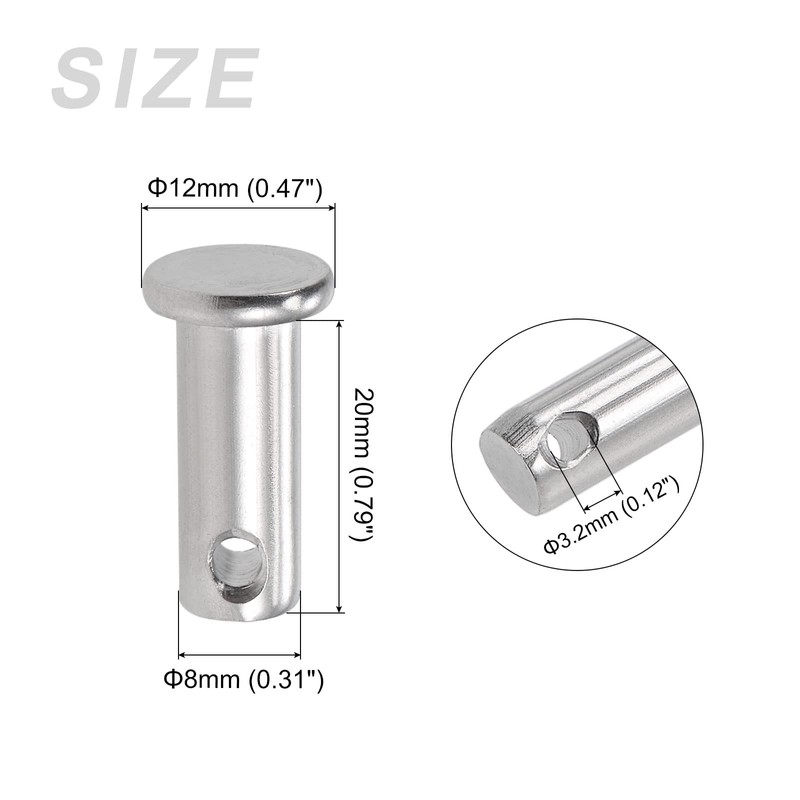- [2]: Specifications - Clevis Pin Size: 20 mm (L) x 8 mm (D); Clevis Pin Head Size: 12 mm (D) x 2.5 mm (T); Clevis Pin Hole Diameter: 3.2 mm