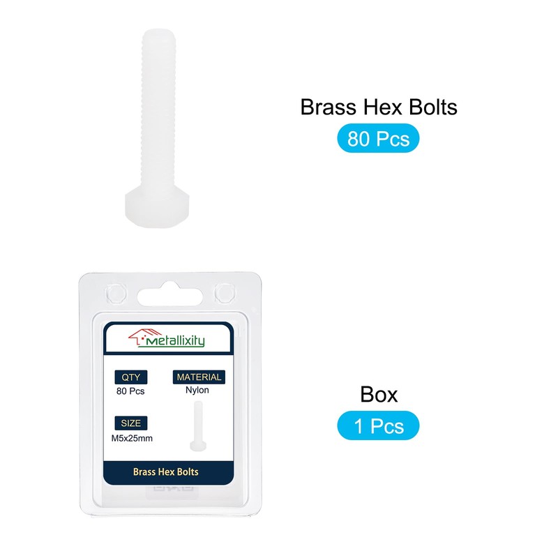 METALLIXITY Nylon Hex Bolts (M5-0.8x25mm) 80Pcs, Plastic Coarse Fully Threade...
