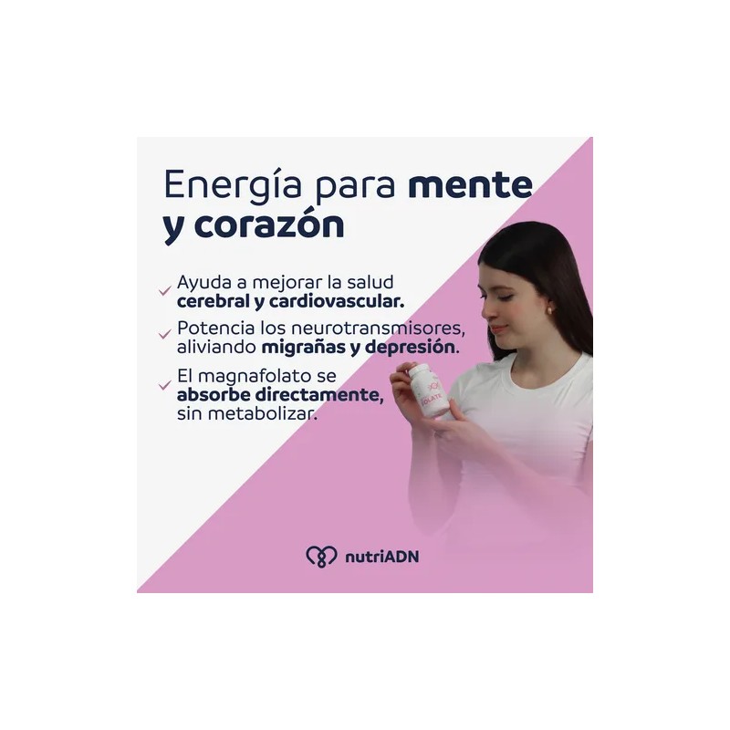 SUPLEMENTO DE METILFOLATO: Contiene Magnafolato, la forma más absorbible y estable del metilfolato, apoyando funciones cognitivas óptimas.