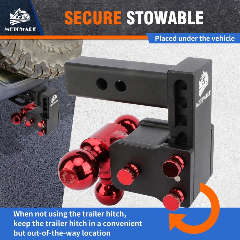 - POWERFUL BUILD - METOWARE adjustable trailer hitch is built to last thanks to its high-strength steel construction and corrosion-resistant black powder-coated finish to withstand harsh towing conditions. Provide superior strength and toughness, capable of withstanding heavy loads without easily deforming or breaking.