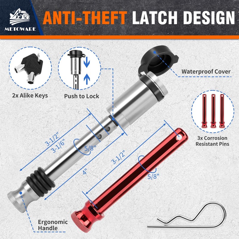 - DUAL ANTI-THEFT - The adjustable arm and ball assembly adopt an integrated anti disassembly design, so even if the lock is broken, the adjustable trailer hitches cannot be easily separated. The anti-theft lock is made of stainless steel and is difficult to pry open or cut with ordinary tools. By locking the hitch to the receiver, the whole hitch is secure. Greatly reducing the risk of theft.