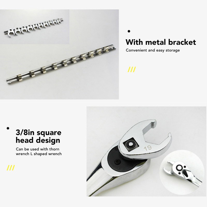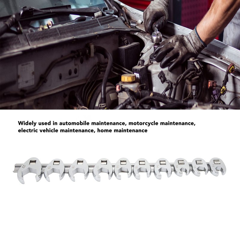 • Function: The crow's foot wrench set is designed to provide easy access to nuts and bolts in tight spaces. Since the set includes 10 different sizes, you can change the keys quickly and easily, making your work more efficient.
