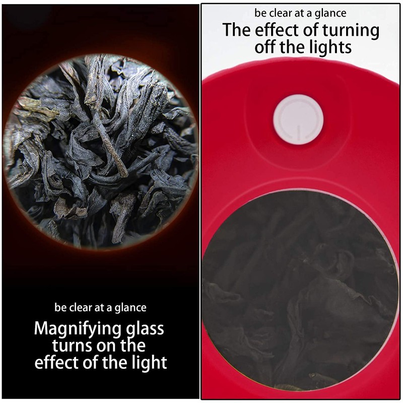 METSHOW Light-Up LED Transparent Seal Storage Jar,Magnifying Viewing Glass Airtight Jar with Grinder ,8 x Magnification Glass(Red)