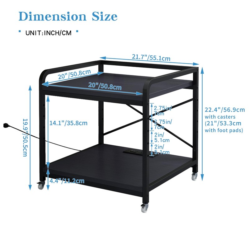 - 【Large Size with Plenty of Storage Space】This printer stand features spacious 20" x 20" square shelves with a robust weight capacity of 200lb on each tier, perfect for accommodating large printers, scanners, and other bulky office equipment. The two-tier storage design provides ample space for organizing printing paper, ink cartridges, and various office supplies.