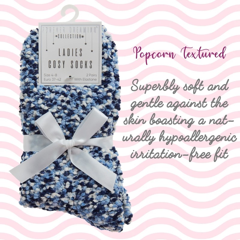 Metzuyan Ladies Chunky Fluffy Winter Lounge Slipper Boot Bed Sock Popcorn Style Blue Size UK 4-8