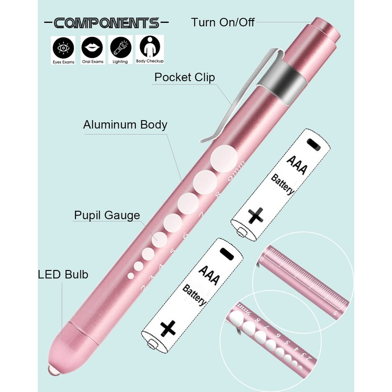 - 【USEFUL】: The penlights are made of premium aluminum alloy and led bulb, very simple to operate by pressing the button, which make sure these nurse penlights durable and long-life using.