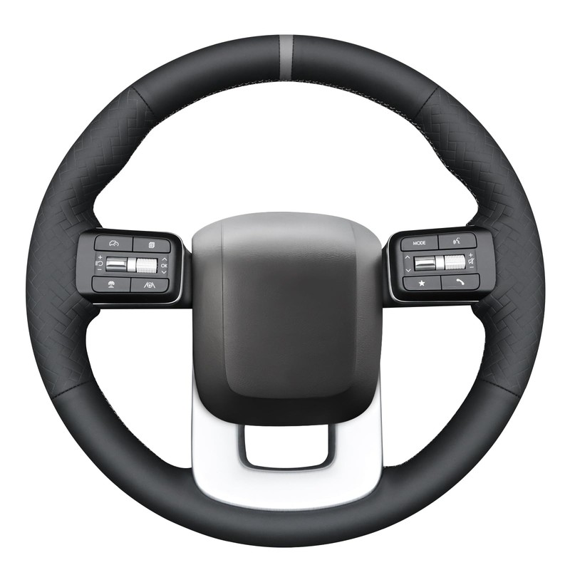 MEWANT Hand Stitch Black Smooth Woven Embossed Artificial Leather Steering Wheel Cover for Hyundai Santa Fe 2024
