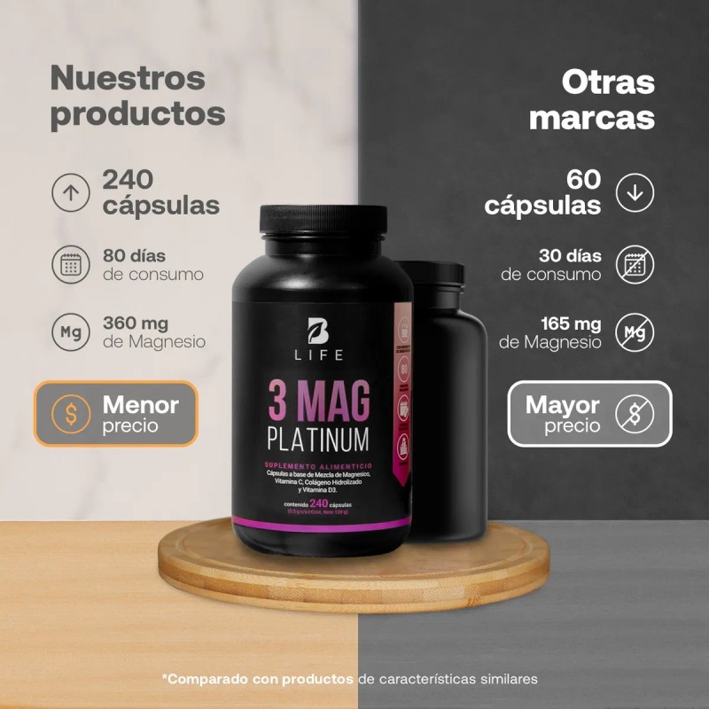 3-Mag Platinum B-Life | 240 Cápsulas | Mezcla de 3 Magnesios de Alta Absorción | Sueño, Mente y Músculos Saludables