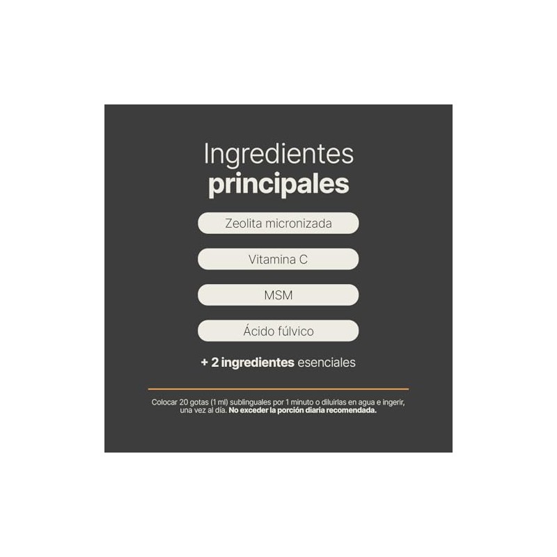 Mezcla de Zeolita, Vitamina C, MSM 60 ml. Desintoxiacion de Metales Pesados. ...