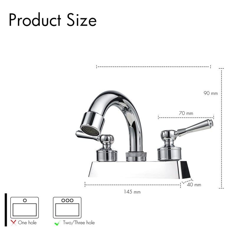 - ❖FÁCIL DE INSTALAR: Con juego central de 3 orificios y 4 pulgadas, los grifos de baño de 2 manijas se ajustan a la instalación estándar de 4 pulgadas para una instalación rápida y fácil.