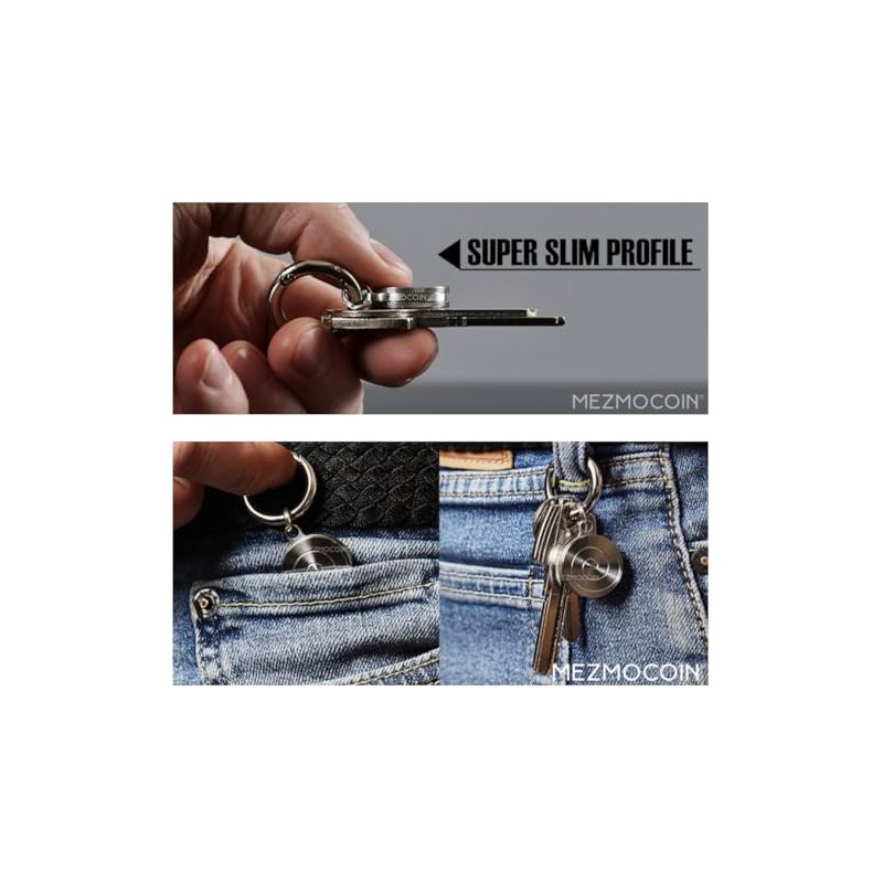 - A new keychain size version of the popular Mezmocoin spinning toy that creates a mind-bending optical illusion of continuously flowing spiral.