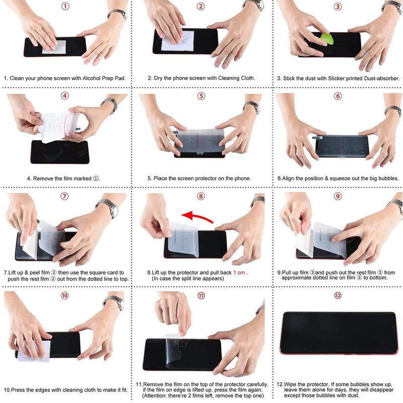 • EASY INSTALLATION – Thanks to bubble-free adhesive they can be very easily installed and removed without leaving any residue on the screen. IMPORTANT! Read instructions (in one of the images) before installing.