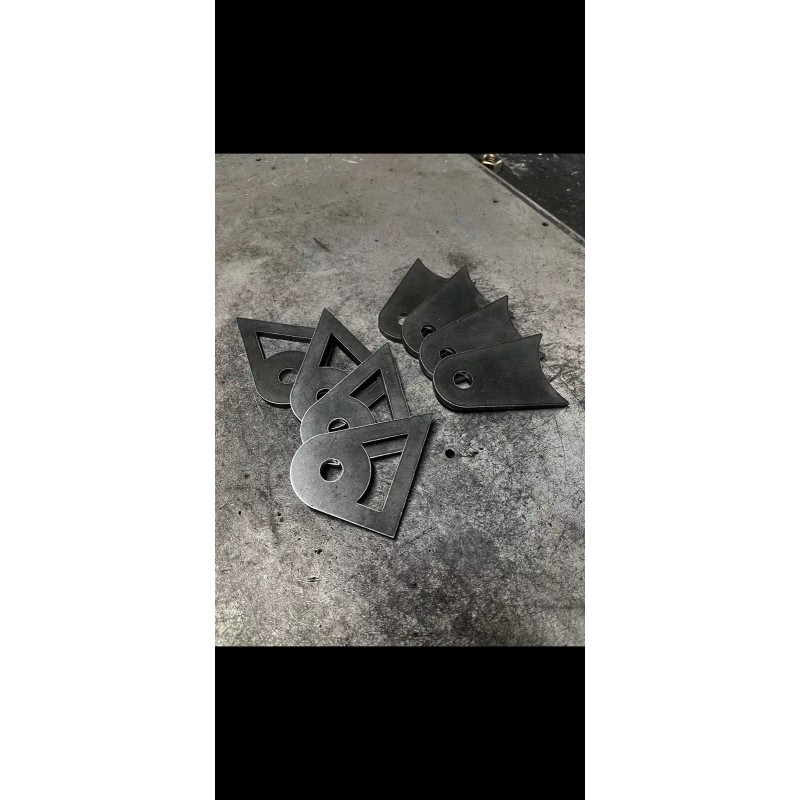 These have 3/4” bolt holes and the axle tabs fit a 4” axle. Made with 1/4” thick mild steel