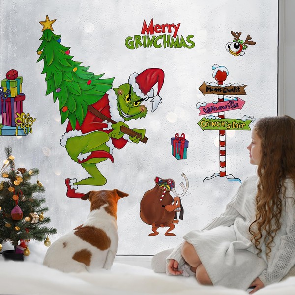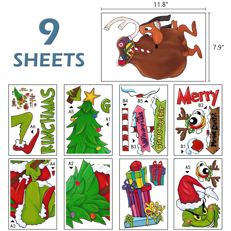 Mfault 2025 New Year Christmas Window Clings 9 Sheets, Funny Max Xmas Tree Wall Glass Stickers Decals Holiday Decoration, Winter Holiday Gift Kids Room Home Kitchen Living Room Decor