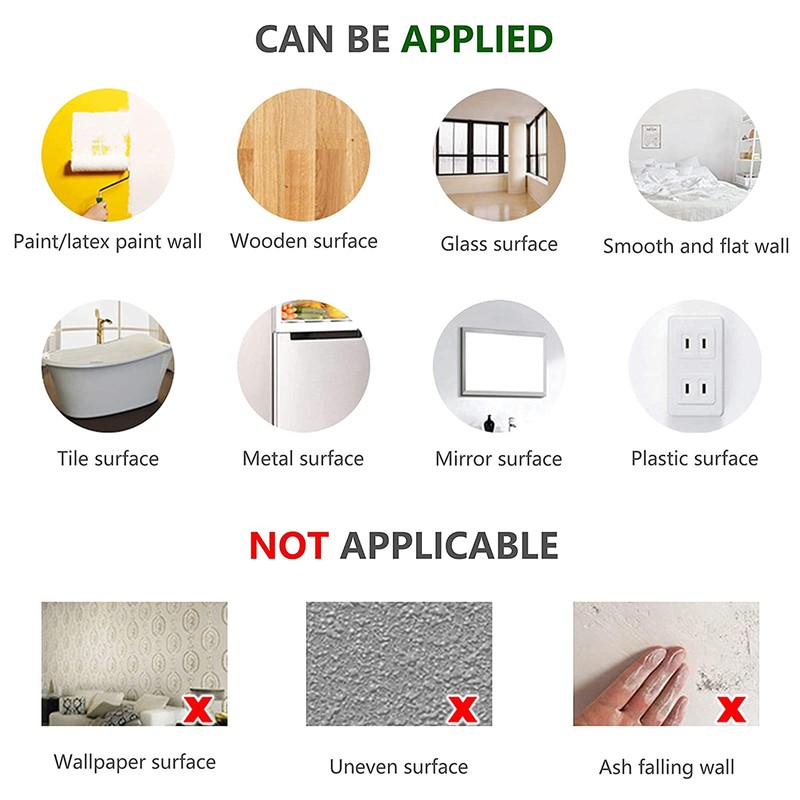 Wide Application: Smooth wall, windows, furniture, cars, doors, mirrors, lockers, luggage, tables, wardrobe, bookshelves, musical instrument surfaces, refrigerator, etc.