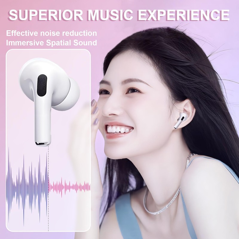 [MFi Certified Air] Pods, Ear Buds Wireless Earbud AirBuds Pods Pro 2, 2025 Bluetooth 5.4 Headphones, 3D Stereo Earphones, 48H Noise Cancelling in Ear Buds IP7 Waterproof Headset for Android/IOS