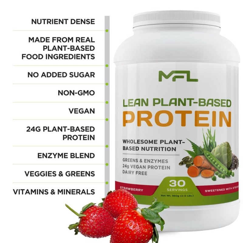 MUSCLE FOOD LABS MFL Vegan, Plant-Based Protein Powder l Gluten Free l Non Dairy l Non GMO l Lactose Free l Keto-Friendly | 2.12 lbs (Strawberry)
