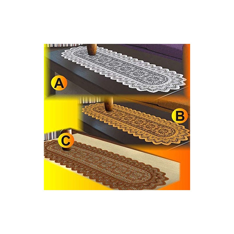 MforStyle Table Runner Lace White or Brown or Antique Gold (A - White)