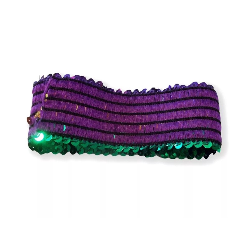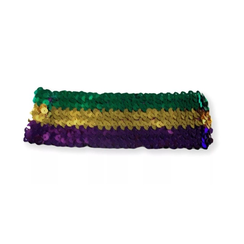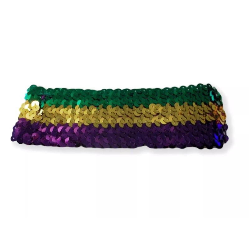 Sequin Mardi Gras Elastic Headband Purple Green Gold