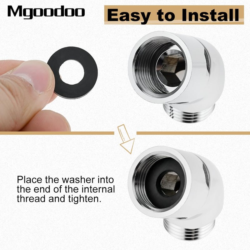 - 【EASY INSTALLATION】 Comes with a washer, the shower head elbow adapter features a user-friendly design that allows for easy and hassle-free setup. Simply put the washer into the end of the female thread and tighten it. A few minutes to complete the installation.