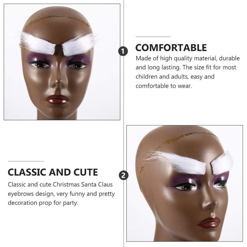 MHFOOU Self Adhesive Fake Eyebrows, 2 Pairs Santa Costume White Eyebrows, White Bushy Eyebrows Facial Hair Cosplay Props