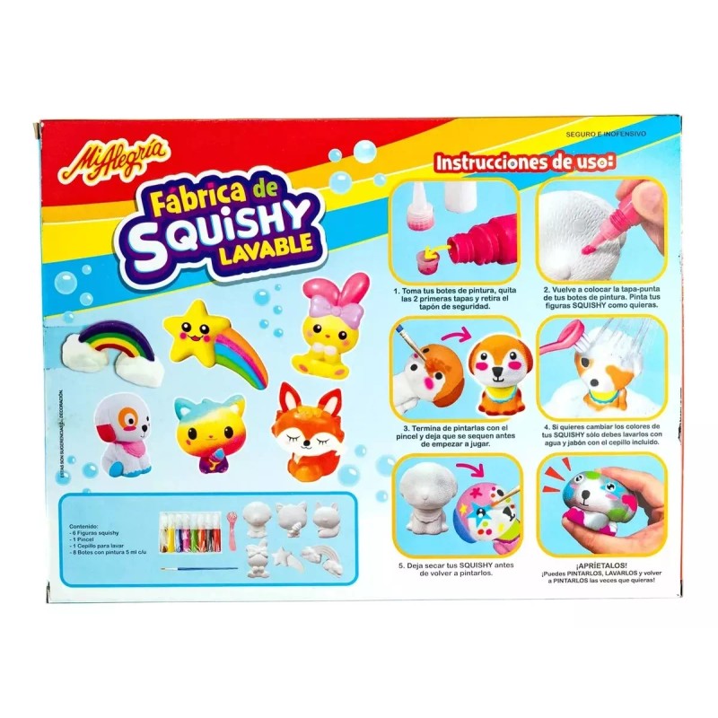 Descubre el maravilloso mundo de la creatividad y la diversión con la Fábrica de Squishy Lavable de la reconocida marca Mi Alegría. Este increíble juguete está diseñado para niños a partir de 4 años, permitiéndoles crear y personalizar su propio squishy, un juguete antiestrés que pueden lavar y redecorar cuantas veces quieran. El modelo 2307 incluye squishies, pinturas, un pincel e instructivo, todo lo necesario para dar rienda suelta a la imaginación y creatividad de los pequeños. Cada pack contiene una unidad, lo que lo hace perfecto para regalar o para disfrutar de una tarde de manualidades. Con la Fábrica de Squishy Lavable, los niños no solo se divertirán, sino que también desarrollarán habilidades artísticas y de concentración. Así que no esperes más, deja que tus hijos descubran el artista que llevan dentro con la Fábrica de Squishy Lavable Mi Alegría.