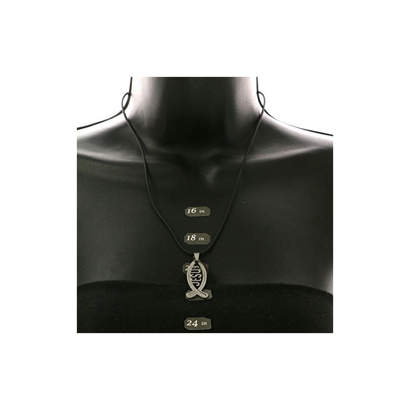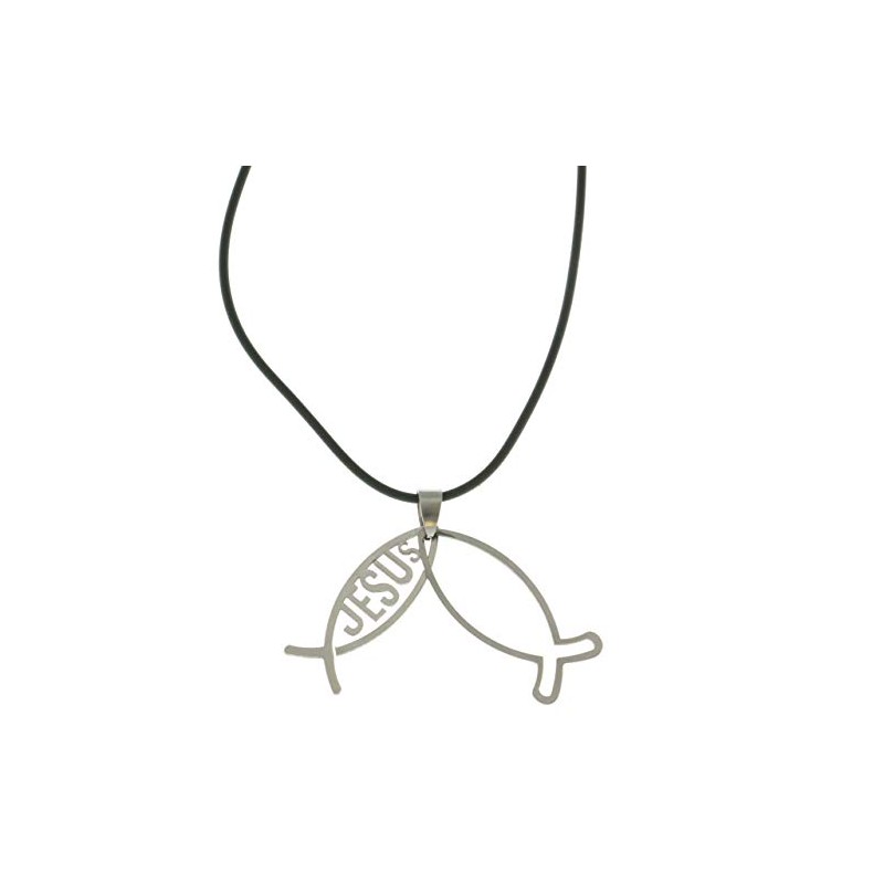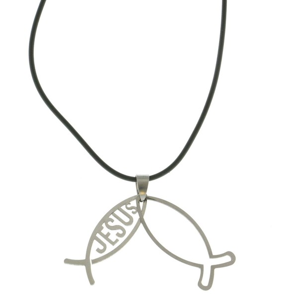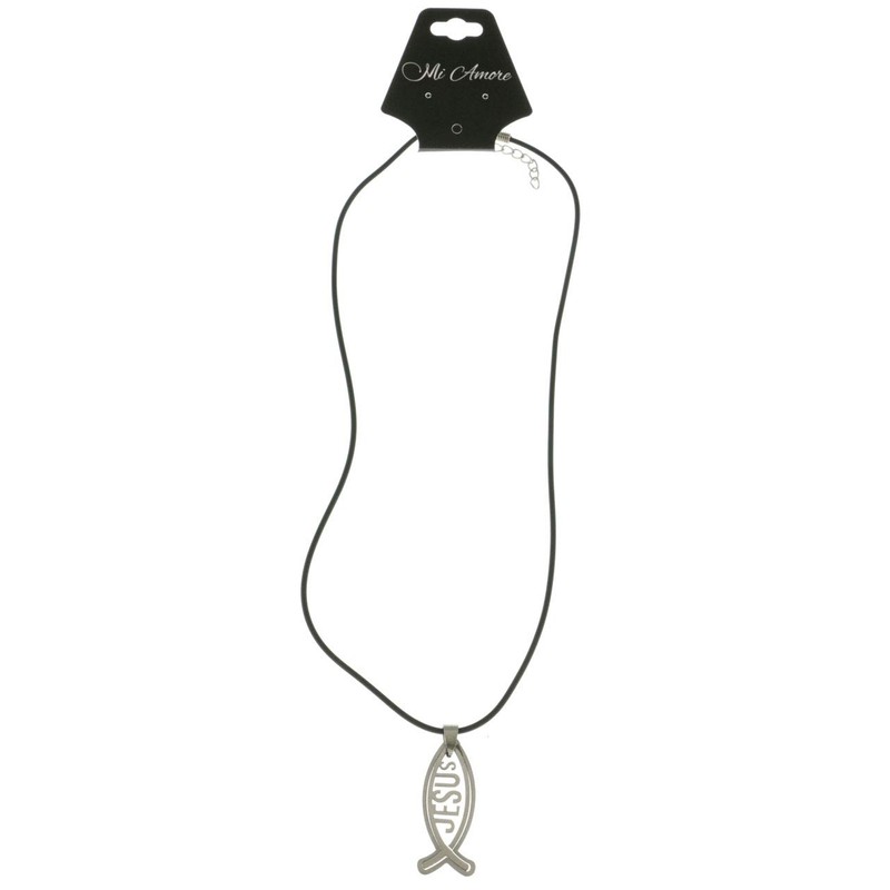 Mi Amore Jesus Fish Adjustable Pendant-Necklace Black & Silver-Tone