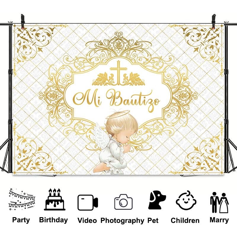 Mi Bautizo Backdrop, First Communion Christening Backgroud 7 x 5 ft, Baptism New Born Baby Shower Cross God Bless Banner Polyester Party Photo Studio Props Photo Shoot Decor