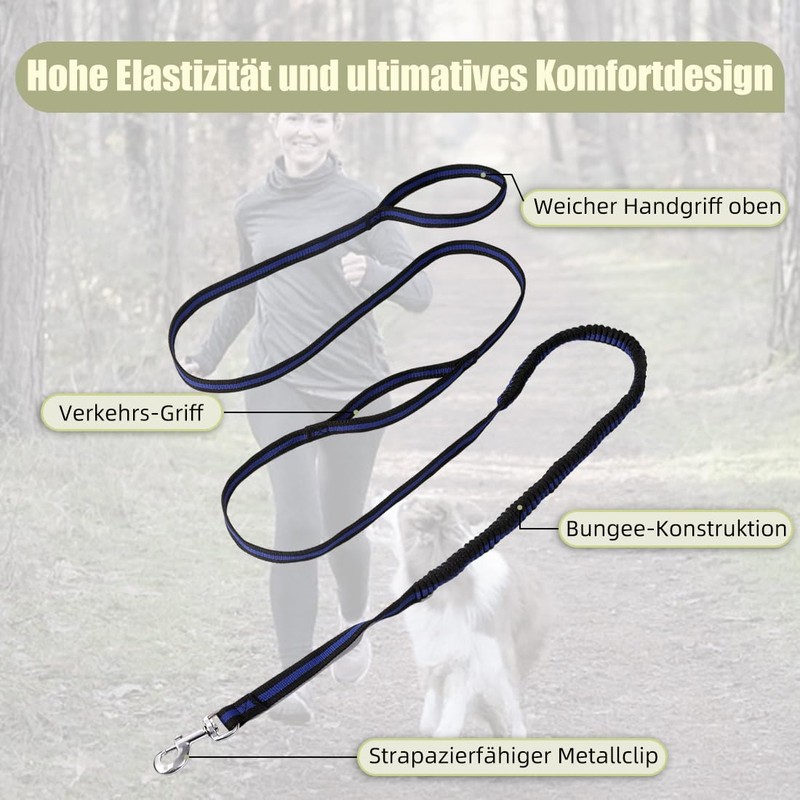 - Safety and adjustable bungee: the shock-absorbing bungee dog lead has a built-in elastic band. It can extend up to 11.2 ft to give enough elasticity and control to reduce the risk of injury and improve the comfort of the hands. The flexible leash reduces cushioning and improves safety when walking.
