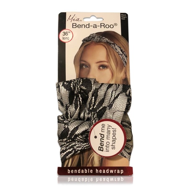 Mia Bend-a-roo is a multiple use product with a hidden wire inside. It cab be used as a headbands, headwrap, bun decoration, ponytail wrap, cuff, scarf, belt, braid wrap and more. It is made with beautiful lace material with a hidden wire inside. It can be bent into unlimited shapes and styles. It measures 36 inches long by 2 inches wide. It works on all hair types. For women and girls of all ages. 1 piece per package.
